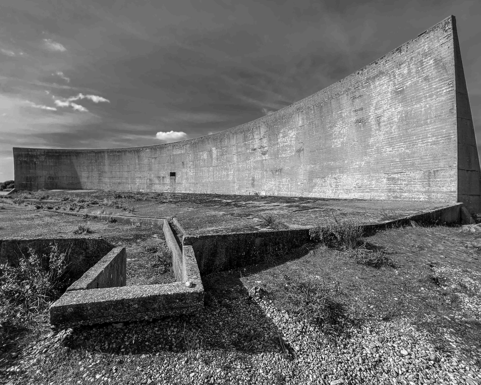 A vast concrete wall, gently curved, intended to detect aircraft across a wider arc of sky. The last and most ambitious of the experiments before radar research overtook them.