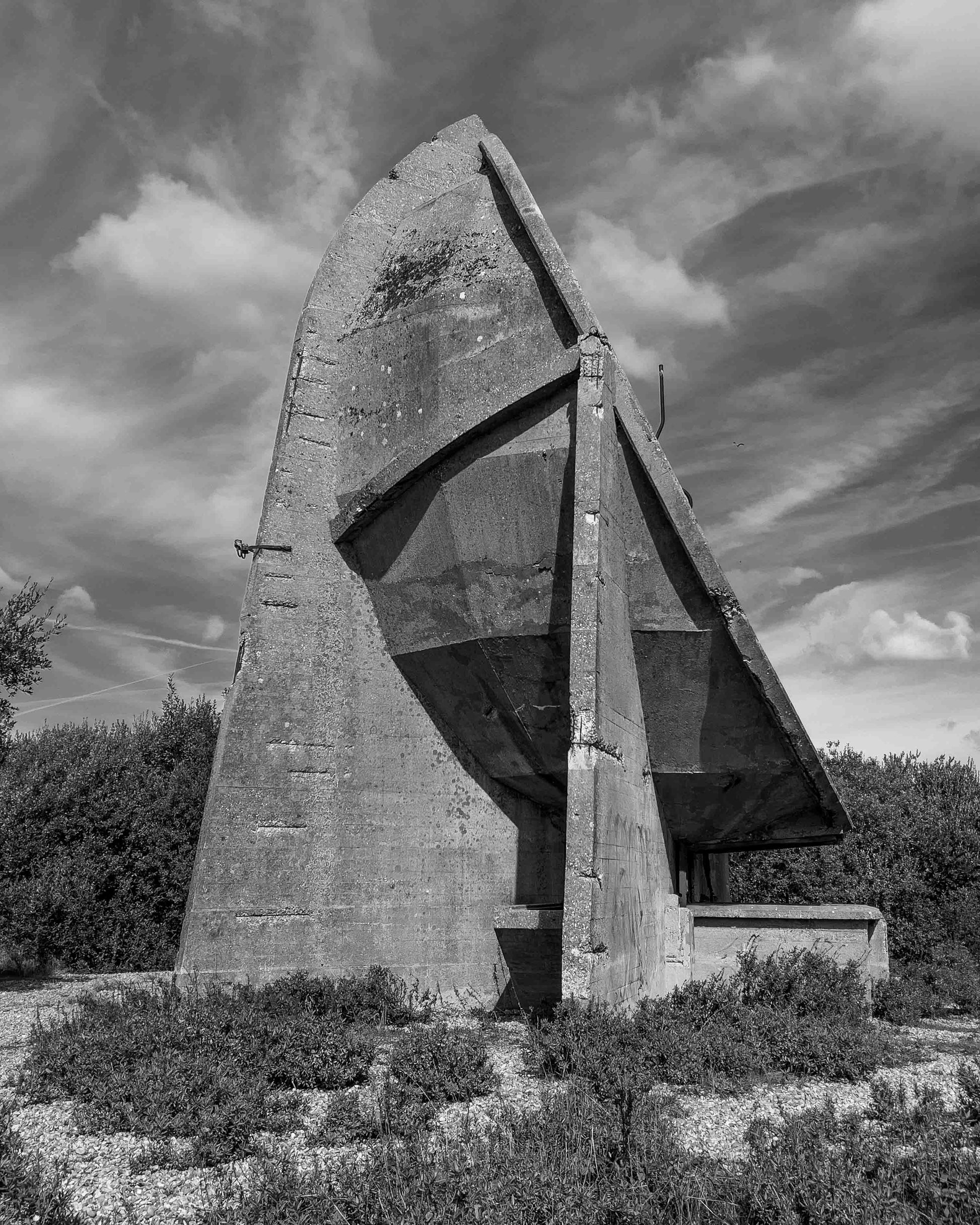 Side view of the 30' mirror. The support for the stethoscope can still be seen at the focus of the mirror.